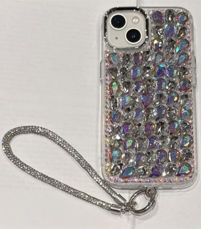 Luxury Aurora Crystal Stone Case with Rhinestone Wrist Strap