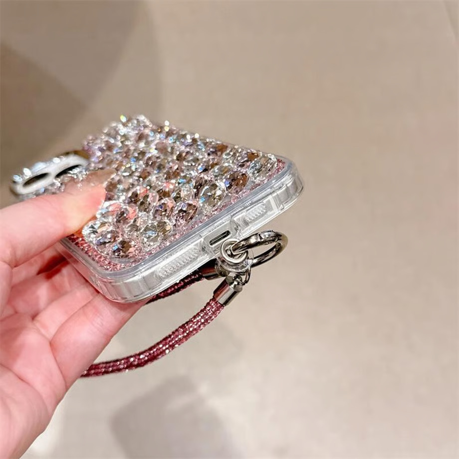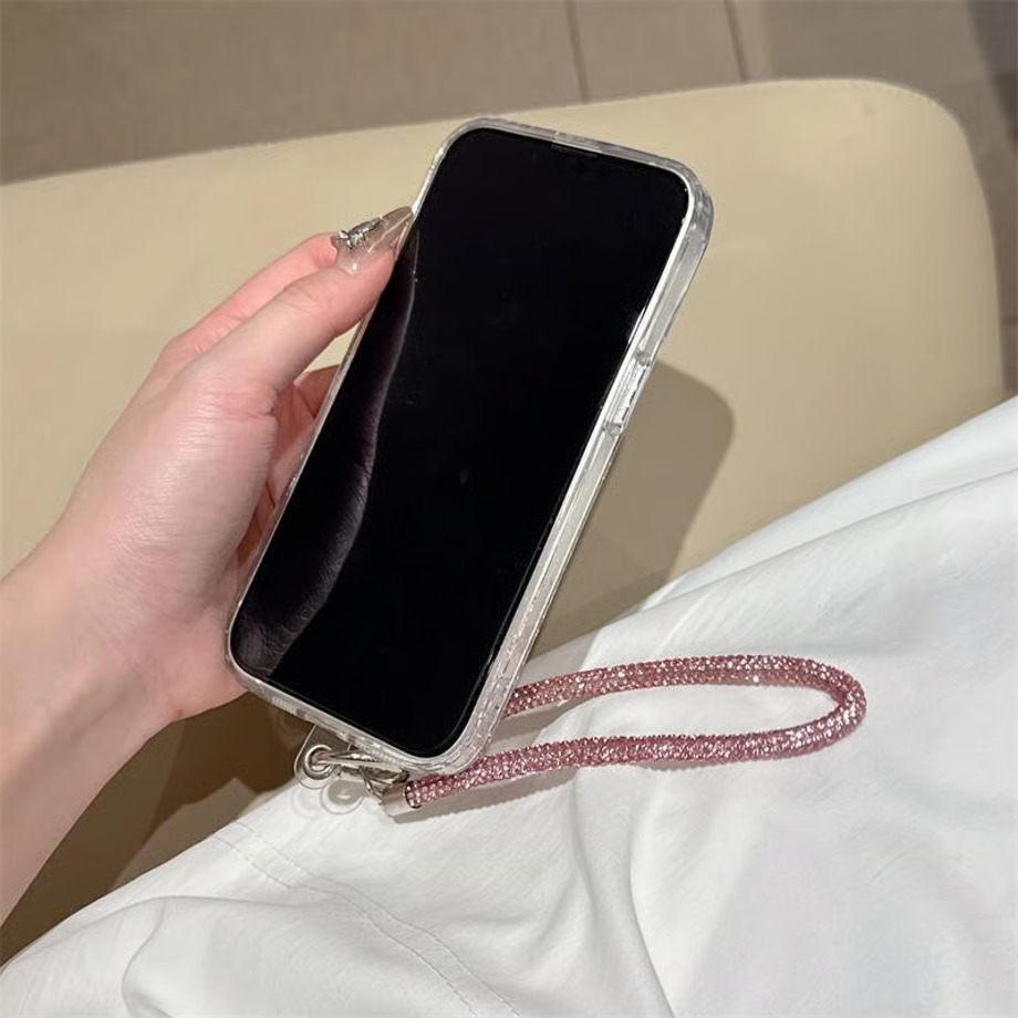 This ultra-glamorous case features premium Aurora Borealis (AB) crystals that reflect a rainbow of colors. Complete with a shimmering rhinestone wrist strap, it’s the perfect blend of high-fashion elegance and secure handling for your iPhone.
